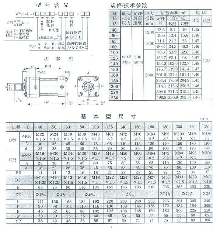W70L-1、W140L-1轻型拉杆液压缸系列